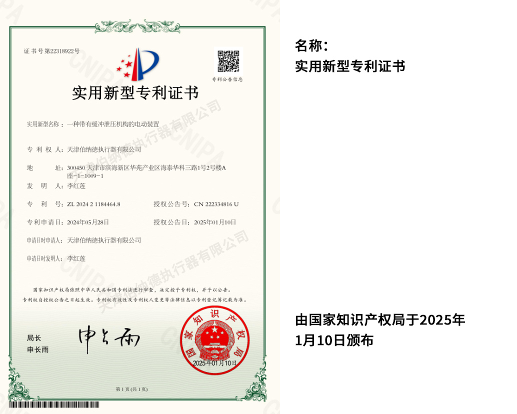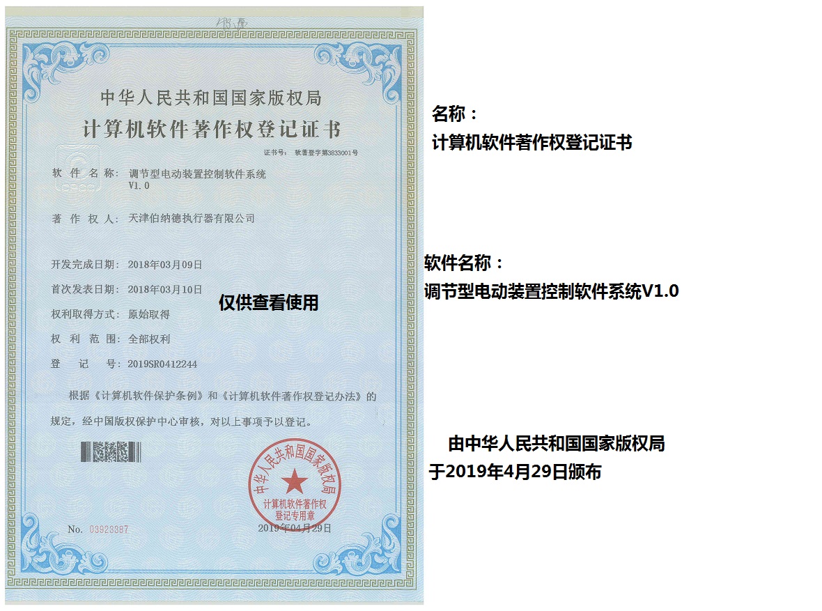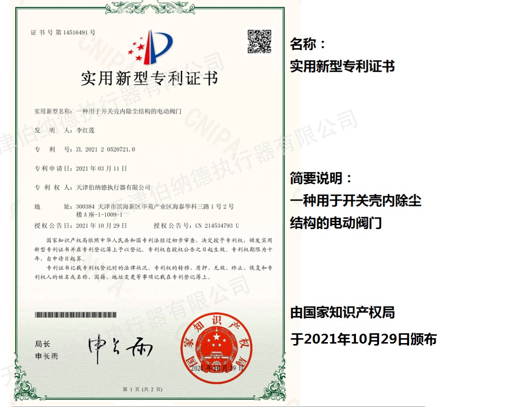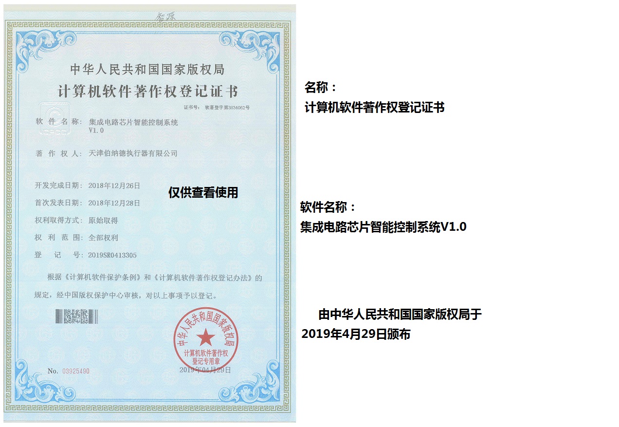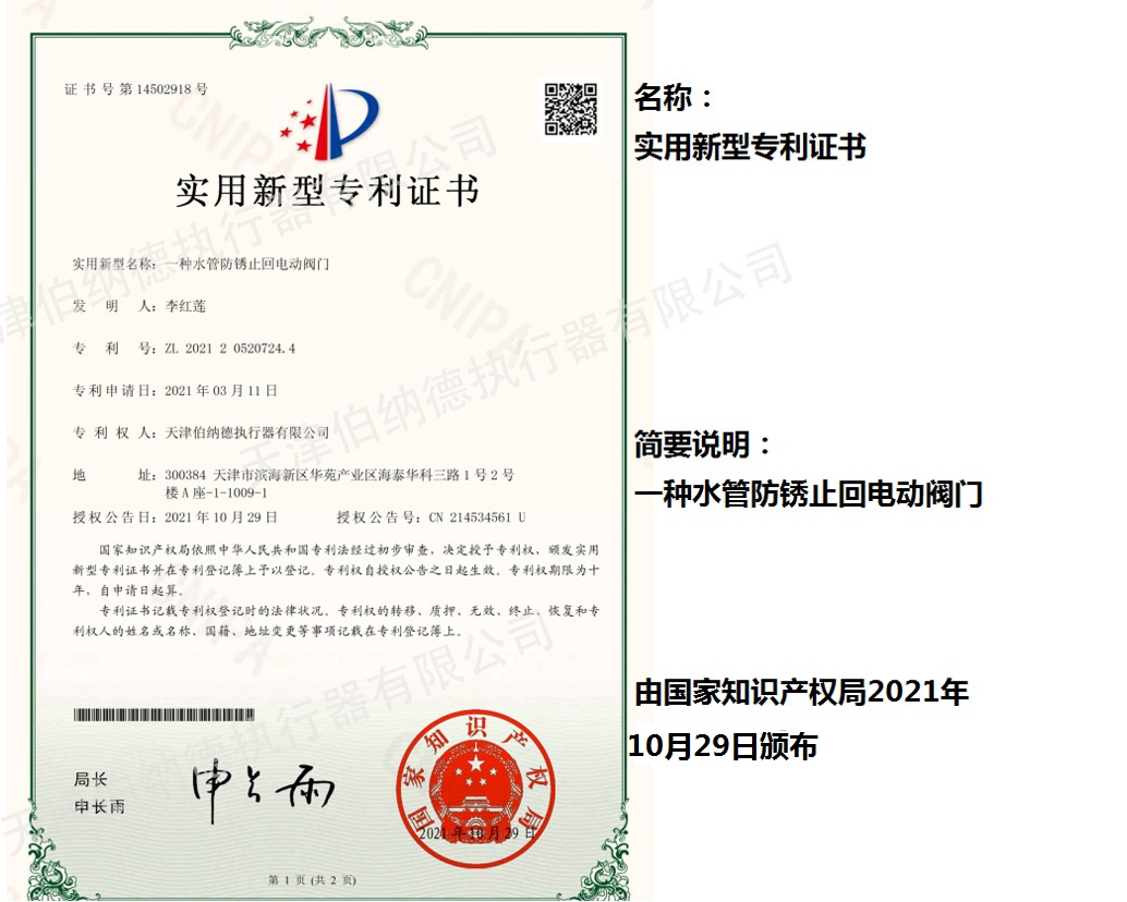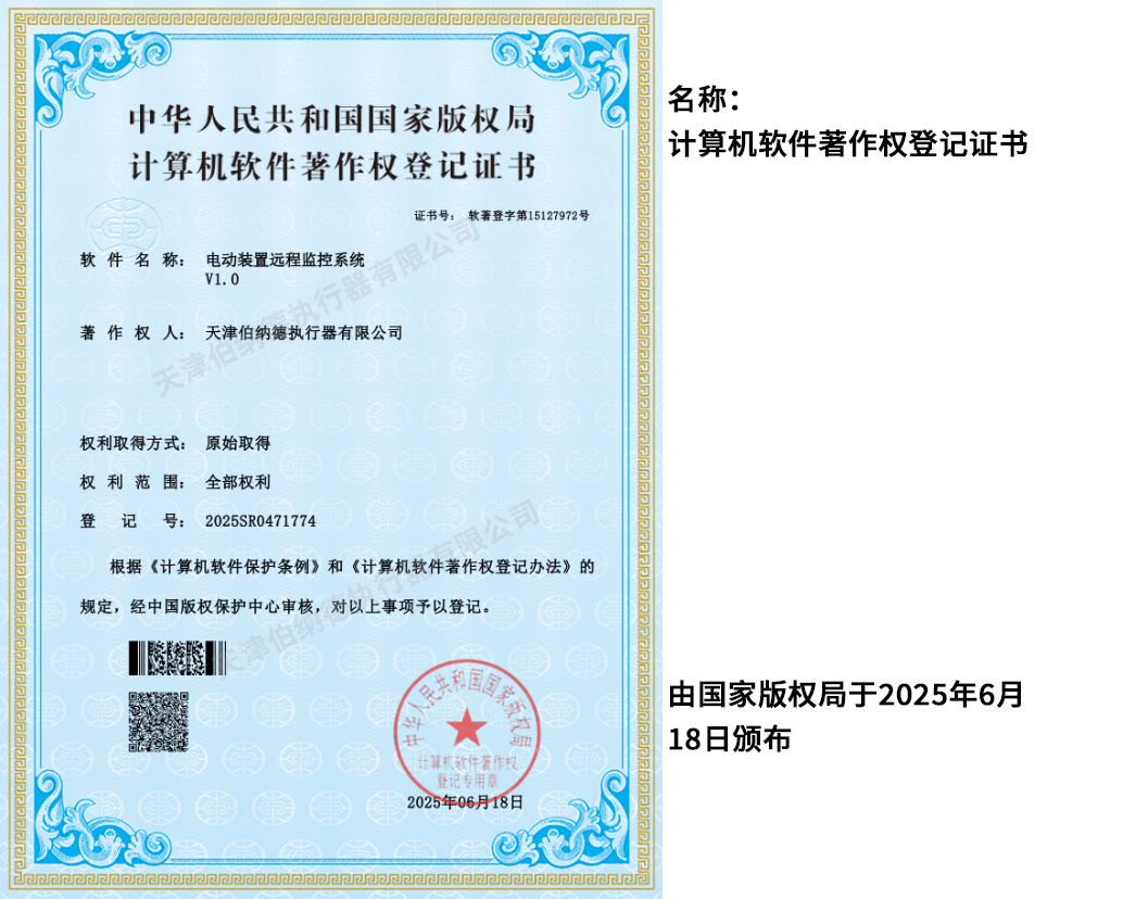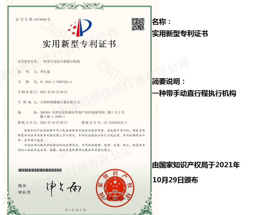 天津伯納德執行器有限公司(以下簡稱天津伯納德)位于高新產業園區—華苑產業園區,是受國家扶持的高新技術企業,連續9年獲得了“國家高新技術企業證書”,并且獲得了“天津市市級高新技術企業證書”和“國家科技型中小企業”、“天津市科技型中小企業認證證書”等榮譽稱號。 天津伯納德擁有技術人才和管理人才,是集智能型電動執行機構的研究開發、生產制造、銷售、安裝調試于一體的公司。天津伯納德堅持質量管理,不斷完善質量管理體系確保產品質量,提供售前售后服務,榮獲“ISO9001:2015質量管理體系認證證書”,歐盟市場認證產品的“C E認證證書”,及俄羅斯認證產品的“E A C認證證書”。 天津伯納德主要生產的產品類型有:SD 系列電動執行器、IQ系列電動執行器、DKJ系列電動執行器、QT系列電動裝置、DZW系列電動裝置、Q系列電動裝置、ISA系列電動裝置、ISQ系列電動裝置、BAZ系列電動裝置等智能型電動執行器及閥門電動操作器, 閥門伺服操作器,接線端子盒,現場控制箱,現場調試儀,球型鉸鏈,電動蝶閥,電動球閥,電動調節閥,配套電路板,配套模塊,配套閥門等多類型產品。產品種類豐富,生產技術成熟,滿足各行各業的執行器需求。 天津伯納德是生產電動執行機構的制造企業,擁有自身的專利和技術研發團隊,擁有過多項專利,榮獲“溫控式電動執行器實用新型專利證書”、“整體式電動閥門裝置實用新型專利證書”、“防爆型閥門電動裝置實用新型專利證書”、“智能型電動執行器實用新型專利證書”、“智能型電動調節閥實用新型專利證書”等專利證書。 天津伯納德生產的智能型電動執行機構,使用數字集成芯片,可選配全中文菜單操作和顯示、智能、人性化的機電一體的結構設計,免開蓋紅外線遙控器設定造就了其完善的功能、輕巧美觀、調試簡單、操作方便、中文菜單智能顯示簡單明了、可靠,充分保護,具有其完善的保護功能。