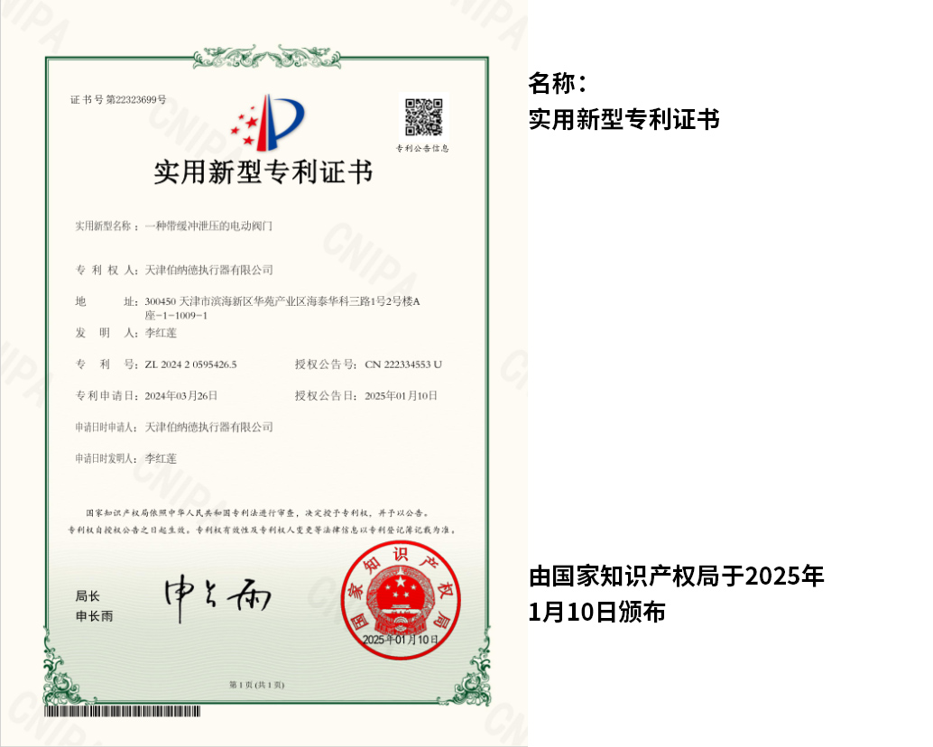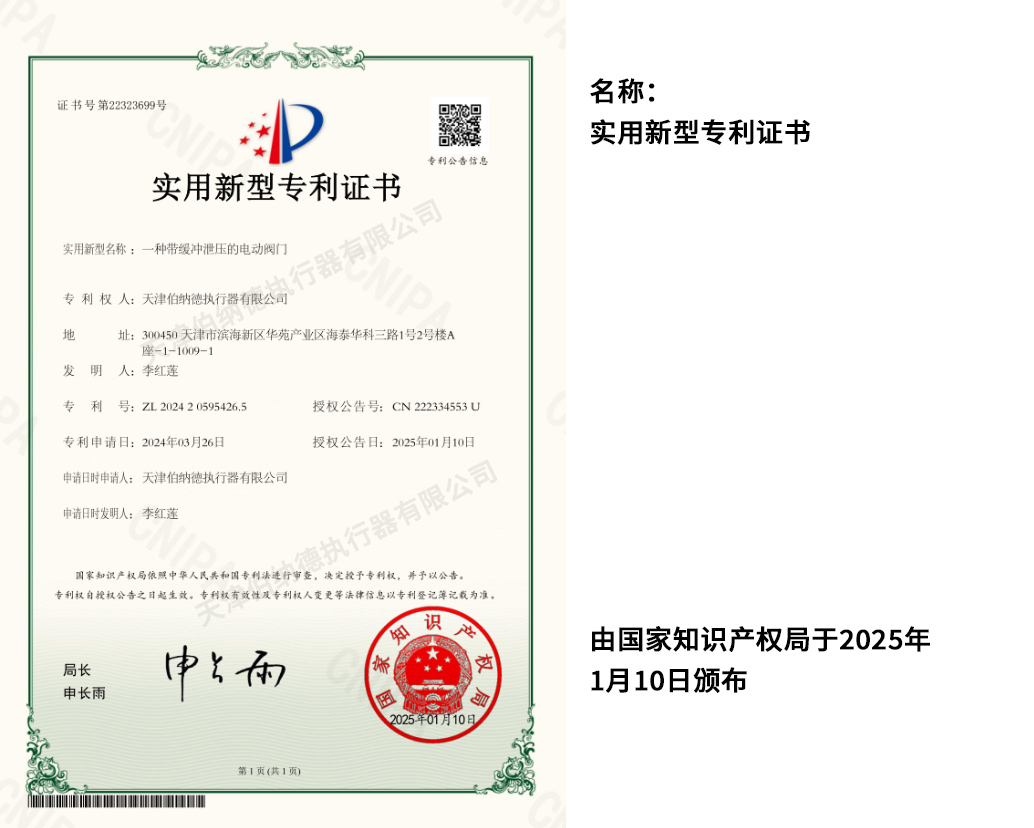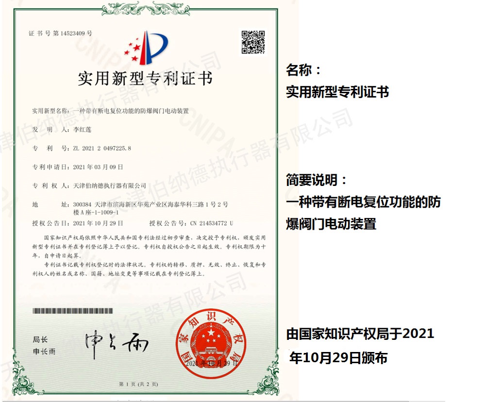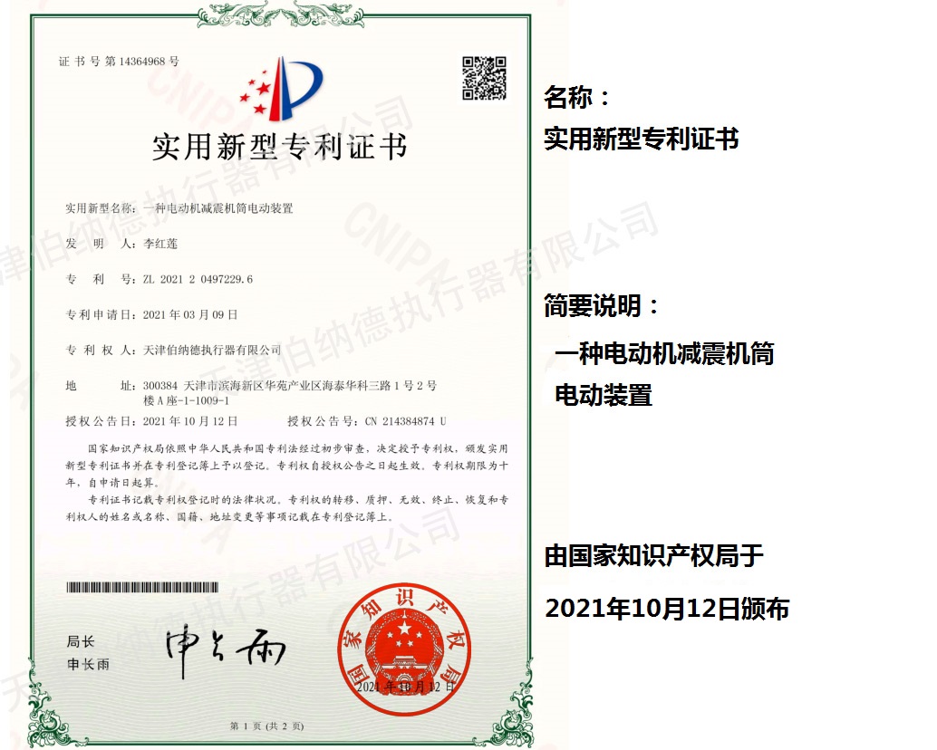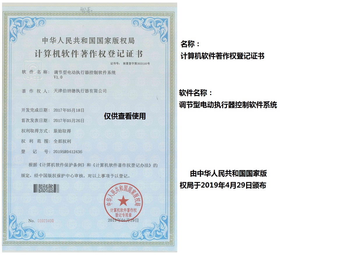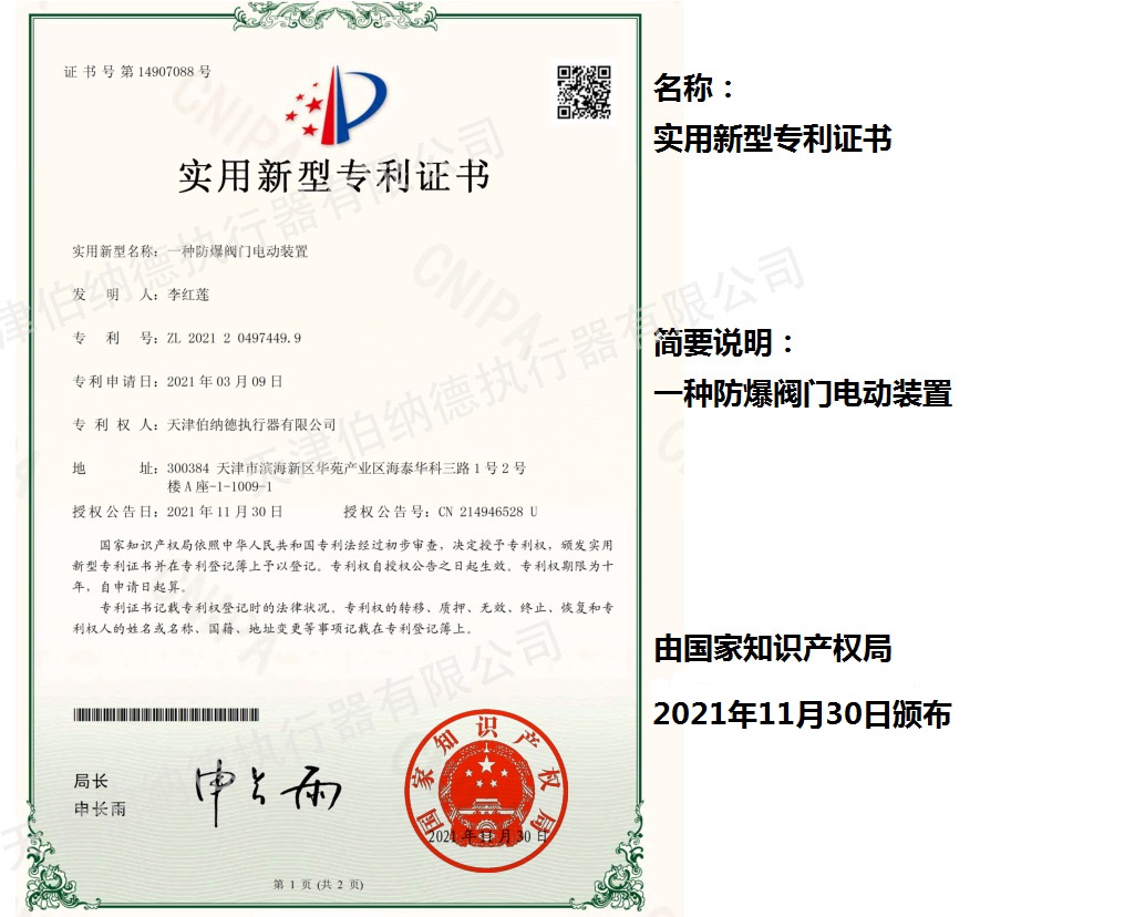 天津伯納德執行器有限公司(以下簡稱天津伯納德)位于高新產業園區—華苑產業園區,是受國家扶持的高新技術企業,連續9年獲得了“國家高新技術企業證書”,并且獲得了“天津市市級高新技術企業證書”和“國家科技型中小企業”、“天津市科技型中小企業認證證書”等榮譽稱號。 天津伯納德擁有技術人才和管理人才,是集智能型電動執行機構的研究開發、生產制造、銷售、安裝調試于一體的公司。天津伯納德堅持質量管理,不斷完善質量管理體系確保產品質量,提供售前售后服務,榮獲“ISO9001:2015質量管理體系認證證書”,歐盟市場認證產品的“C E認證證書”,及俄羅斯認證產品的“E A C認證證書”。 天津伯納德主要生產的產品類型有:SD 系列電動執行器、IQ系列電動執行器、DKJ系列電動執行器、QT系列電動裝置、DZW系列電動裝置、Q系列電動裝置、ISA系列電動裝置、ISQ系列電動裝置、BAZ系列電動裝置等智能型電動執行器及閥門電動操作器, 閥門伺服操作器,接線端子盒,現場控制箱,現場調試儀,球型鉸鏈,電動蝶閥,電動球閥,電動調節閥,配套電路板,配套模塊,配套閥門等多類型產品。產品種類豐富,生產技術成熟,滿足各行各業的執行器需求。 天津伯納德是生產電動執行機構的制造企業,擁有自身的專利和技術研發團隊,擁有過多項專利,榮獲“溫控式電動執行器實用新型專利證書”、“整體式電動閥門裝置實用新型專利證書”、“防爆型閥門電動裝置實用新型專利證書”、“智能型電動執行器實用新型專利證書”、“智能型電動調節閥實用新型專利證書”等專利證書。 天津伯納德生產的智能型電動執行機構,使用數字集成芯片,可選配全中文菜單操作和顯示、智能、人性化的機電一體的結構設計,免開蓋紅外線遙控器設定造就了其完善的功能、輕巧美觀、調試簡單、操作方便、中文菜單智能顯示簡單明了、可靠,充分保護,具有其完善的保護功能。